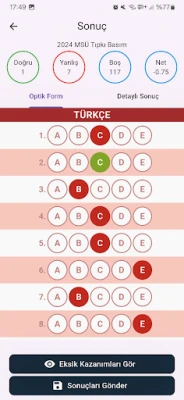 Setelah selesai menjawab soalan, anda akan dapat melihat prestasi anda secara terperinci. Aplikasi ini bukan sahaja memaparkan markah anda, malah ia turut menyediakan kedudukan anda dalam kalangan rakan sebaya, memberikan gambaran yang jelas tentang posisi relatif anda. Ciri analitik yang komprehensif ini membantu anda memahami kekuatan dan kelemahan anda. Lebih daripada sekadar keputusan, A Yayınları Optik Okuma mengintegrasikan sokongan pembelajaran yang kritikal, membolehkan anda menonton penyelesaian terperinci untuk soalan-soalan yang anda anggap mencabar, memastikan tiada lagi kekeliruan yang tidak terjawab.