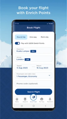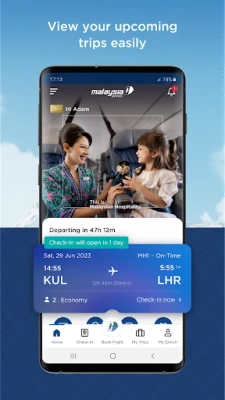 Aplikasi Malaysia Airlines memudahkan proses tempahan dan pengurusan penerbangan anda. Cari, tempah tiket sehala atau pergi-balik dengan mudah, serta urus itinerari anda secara terus dari peranti anda. Lihat atau ubah penerbangan akan datang dan perjalanan lepas berdasarkan tempahan, nama keluarga, atau akaun Enrich anda. Tinggalkan kerumitan pas masuk fizikal; simpan pas masuk digital anda dalam aplikasi untuk pengalaman perjalanan yang lebih efisien dan lancar, membolehkan anda melangkah ke pesawat dengan keyakinan.