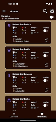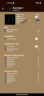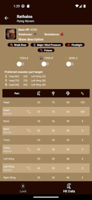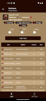 Aplikasi ini turut menawarkan maklumat terperinci mengenai pelbagai item yang boleh anda gunakan dalam pengembaraan anda, memastikan anda sentiasa bersedia untuk setiap cabaran. Bagi pengguna glaive serangga, sistem warna Kinsect dibentangkan dengan jelas, membolehkan anda menguasai sinergi senjata anda dengan sempurna. Semak juga senarai pencapaian dan anugerah untuk menjejaki kemajuan anda dan menetapkan matlamat baharu. Ia adalah alat serba guna untuk meningkatkan kecekapan pemburuan anda.